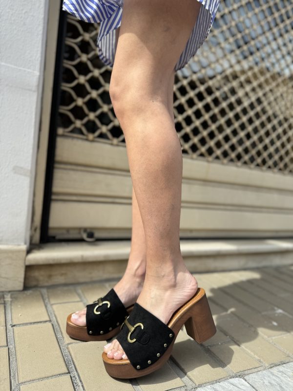 Γόβες Open Heel Με Διακοσμητική Τόκα Μαύρο