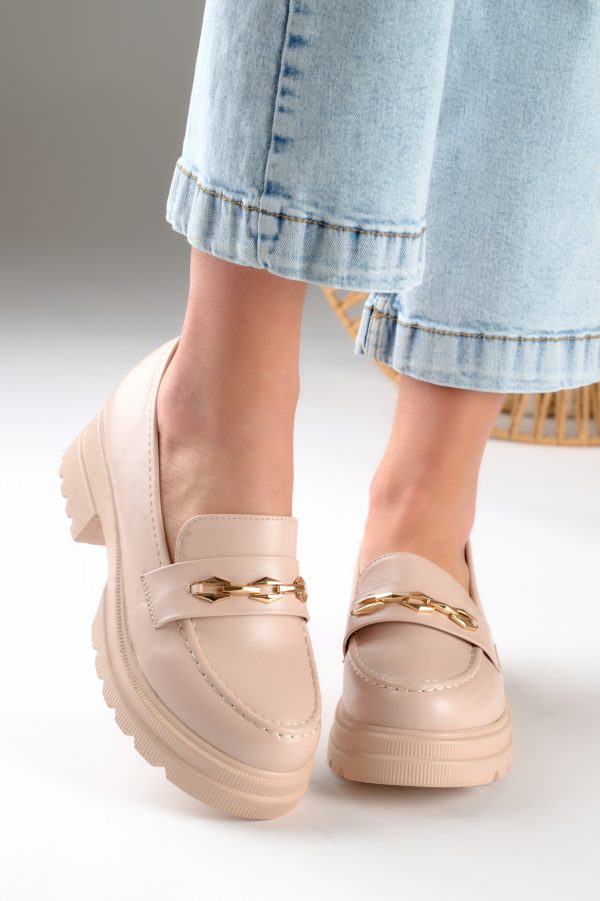 Μοκασίνια με Διακοσμητική Αγκράφα Μπεζ