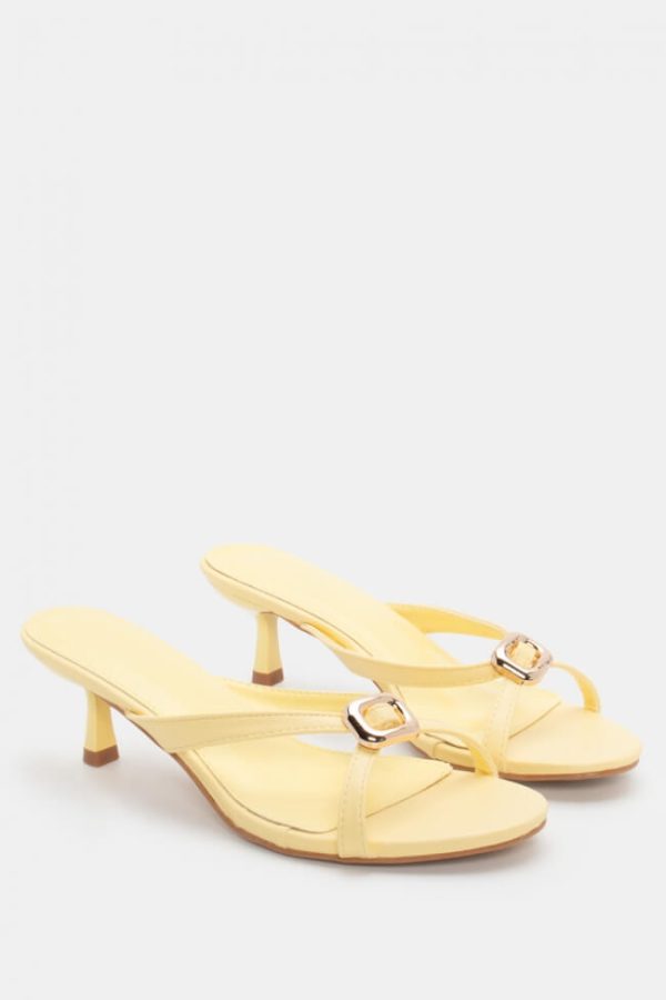Mules με Χιαστί Λουράκια & Μεταλλική Λεπτομέρεια Κίτρινα