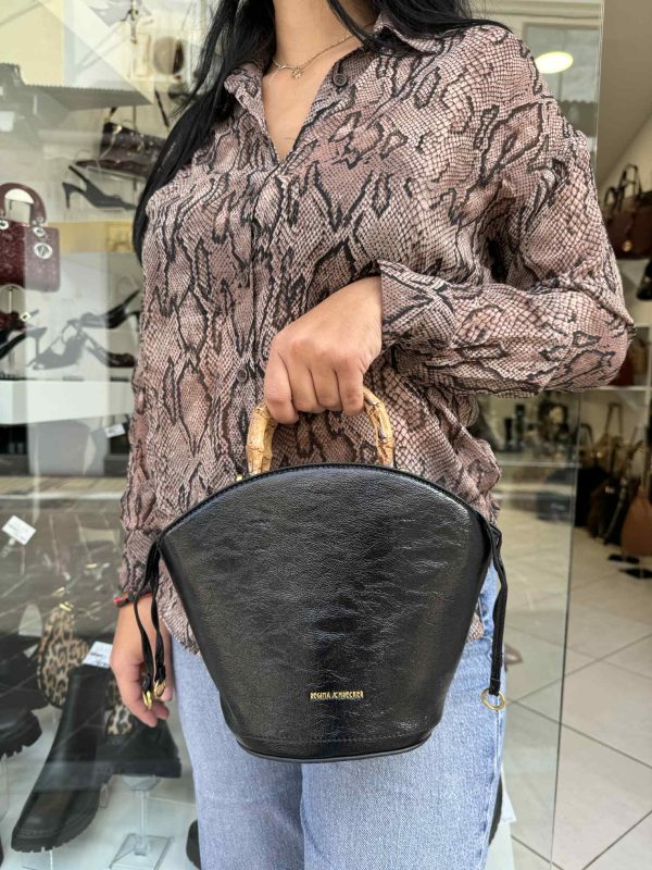 Τσάντα Mε Κοκάλινες Χειρολαβές Μαύρη