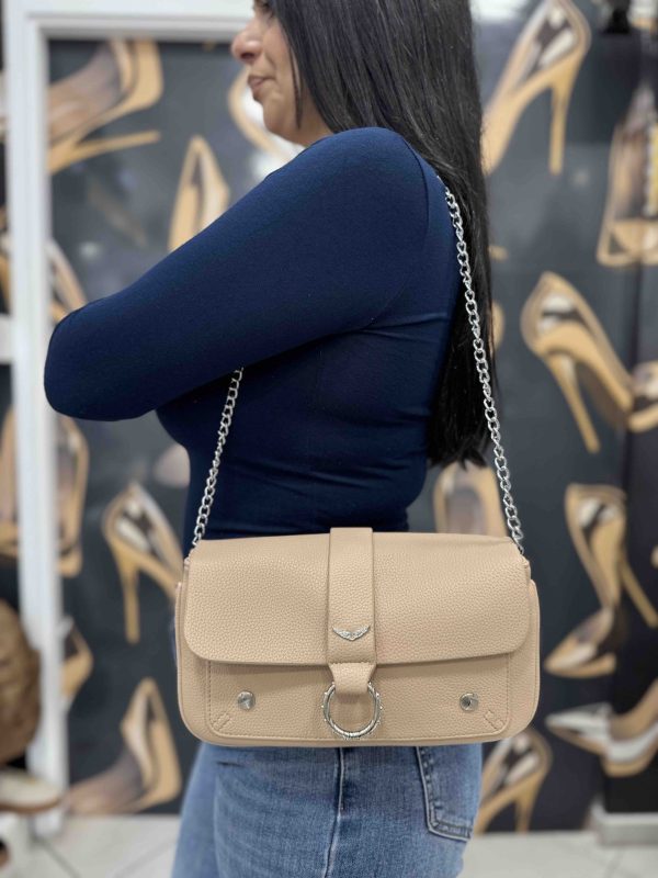 Σουετ Τσαντάκι Χιαστί με Διακοσμητικό Μπεζ