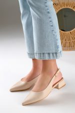 Slingback με λουρακι και Διακοσμητική Αγκράφα Μπεζ
