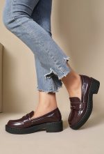 Γυναικεία Μοκασίνια Με Χαμηλό Τάκούνι Μπορντό