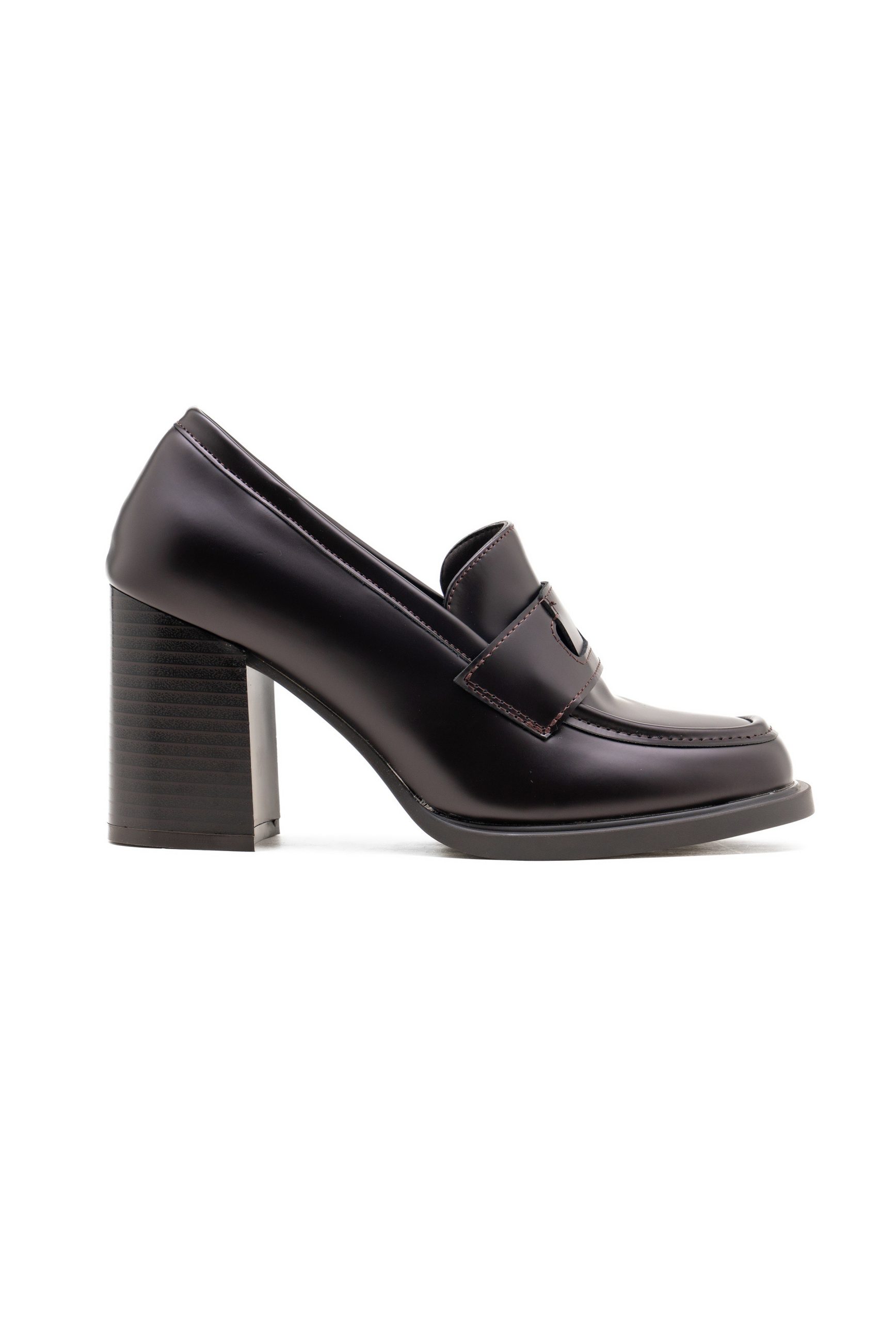 Γυναικεία Loafers Με Ψηλό Τακούνι Καφέ