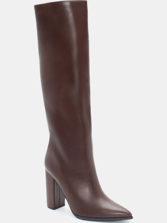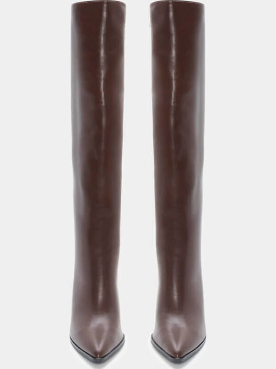 Γυναικείες Μπότες με Ψηλό Τακούνι Καφέ
