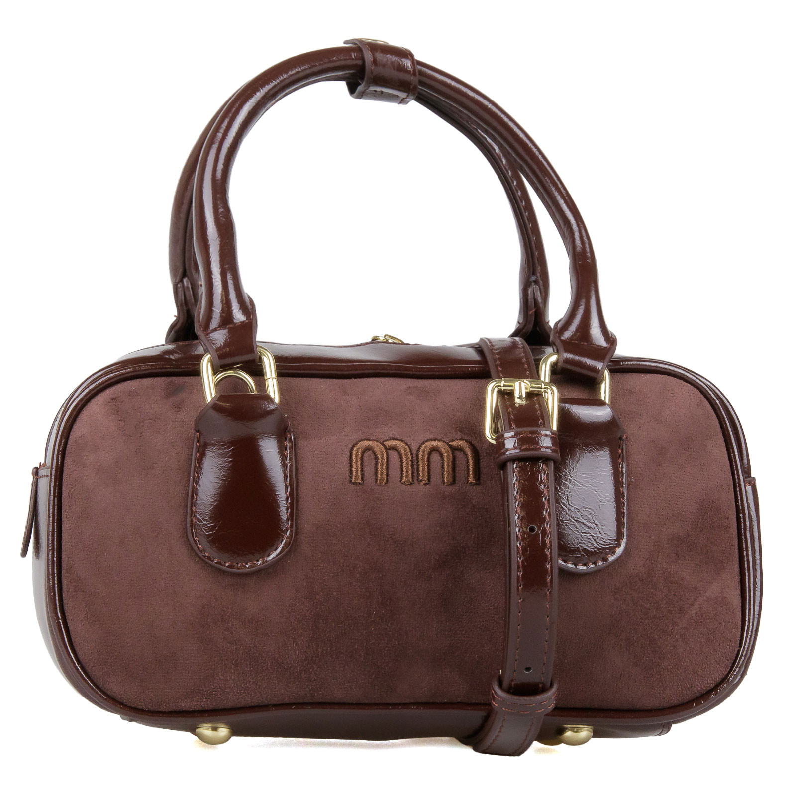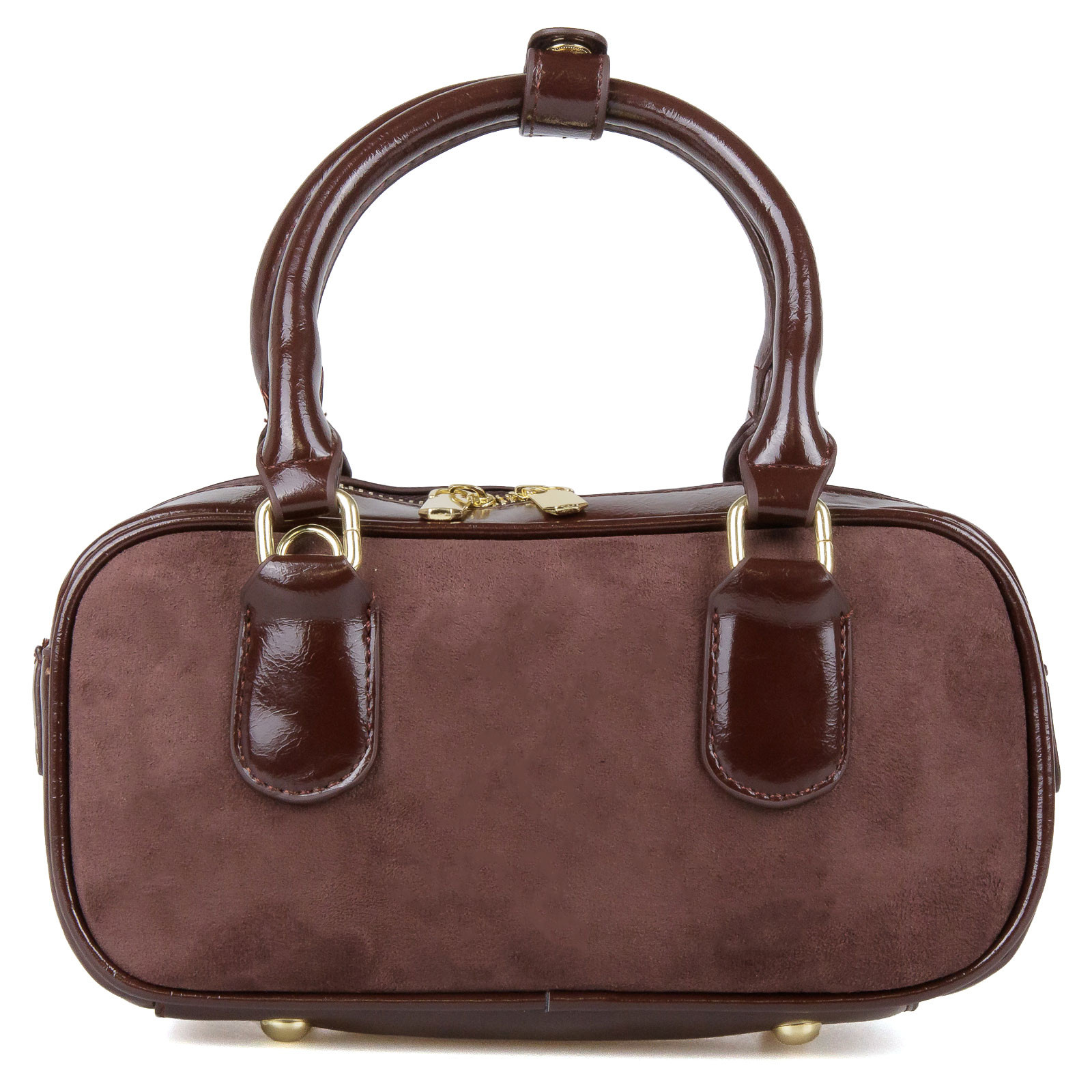Σουέτ τσαντάκι, για να μεταφέρεις με στυλ τα προσωπικά σου αντικείμενα! Διαθέτει χρυσές λεπτομέρειες, αποσπώμενο charm, σταθερά χερούλια για να κρατηθεί ως χειρός και αποσπώμενο ρυθμιζόμενο λουράκι για να φορεθεί στον ώμο ή χιαστί. Εσωτερικά έχει μία κεντρική θήκη και δύο βοηθητικές για χρήματα, κλειδιά ή μικροαντικείμενα. Κλείνει με φερμουάρ