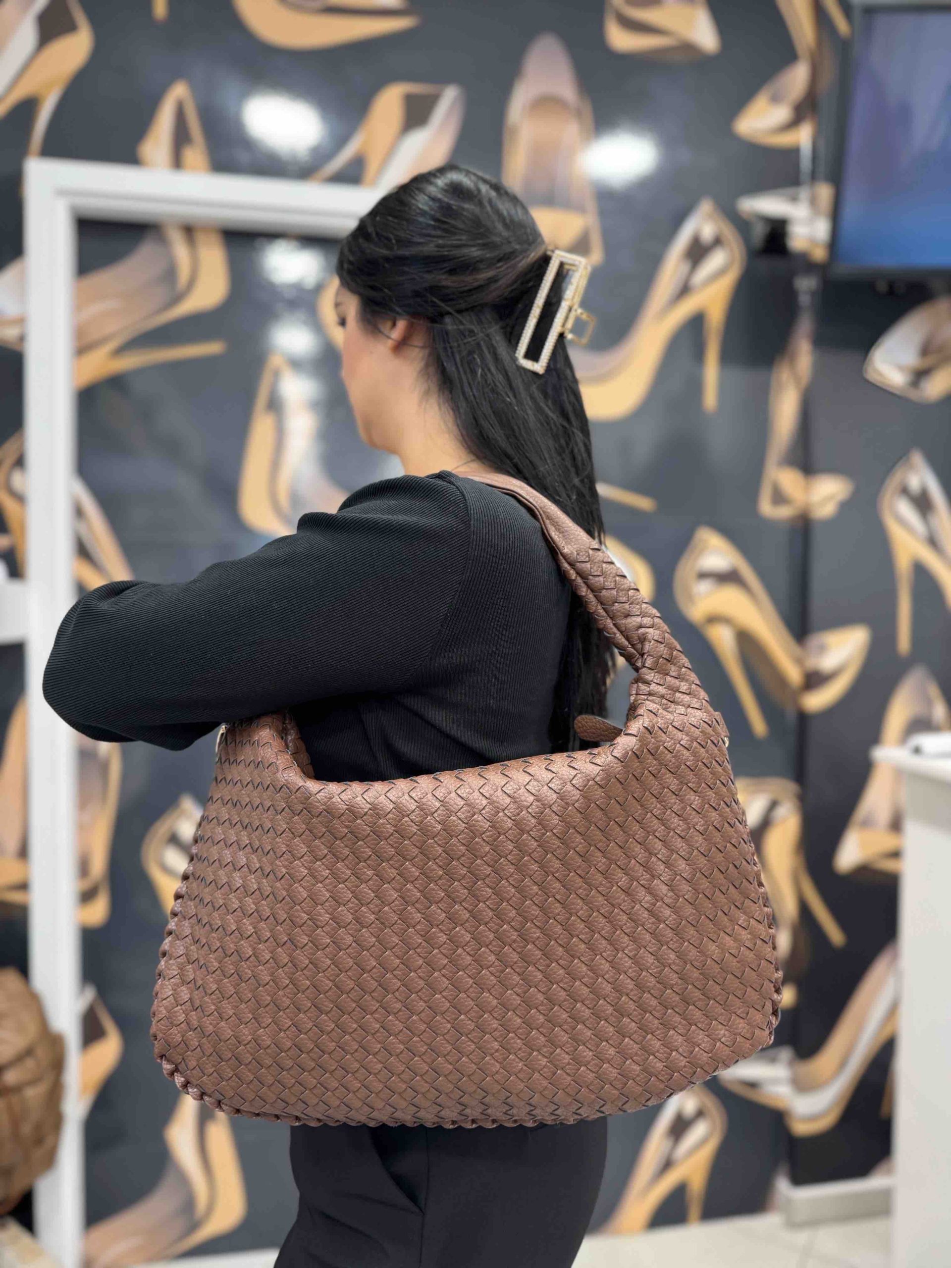 Καφε Τσάντα Ώμου με Πλεκτό Σχέδιο