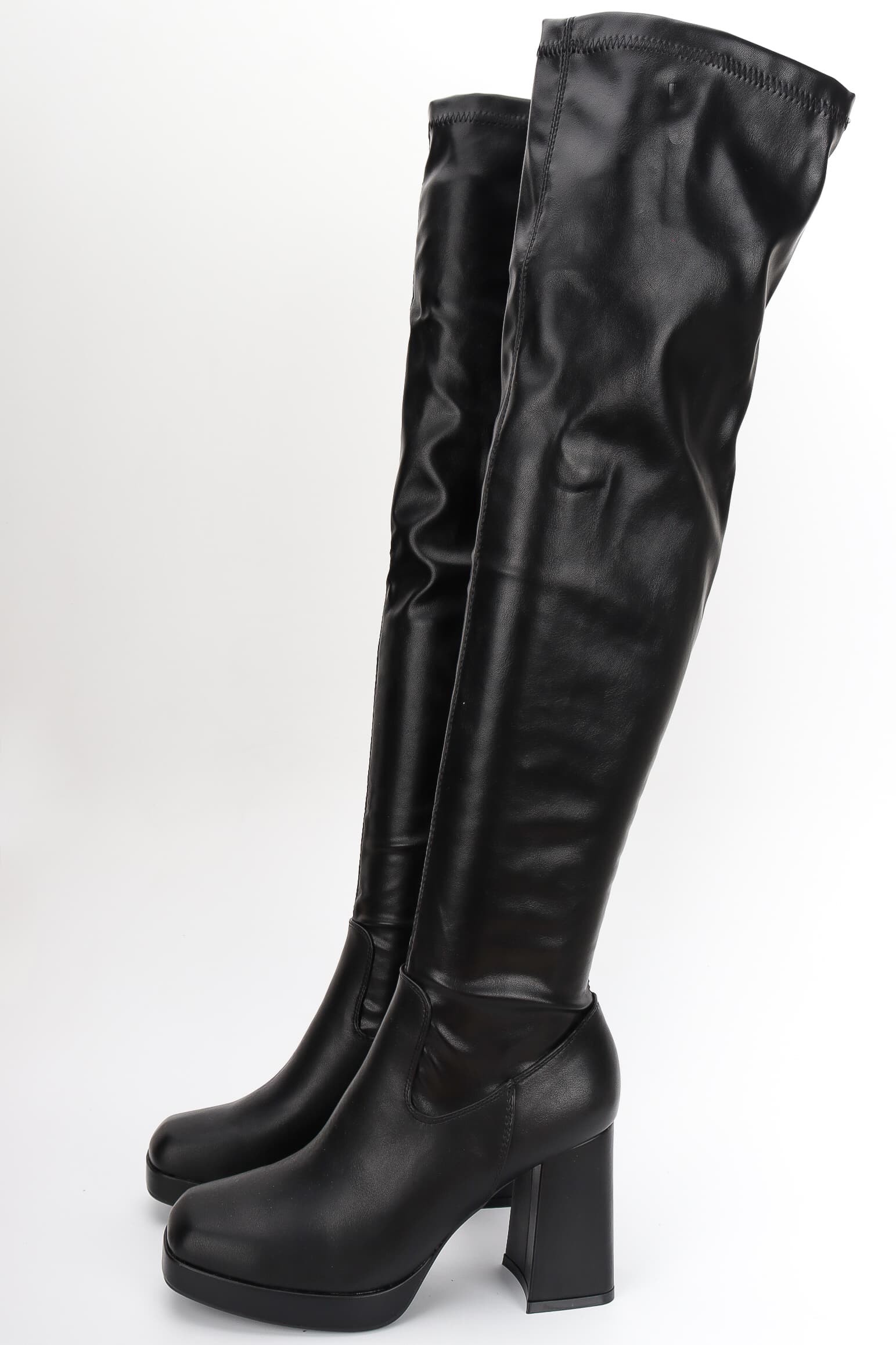 Μαύρες Μπότες κάλτσα πάνω από το γόνατο από ελαστική δερματίνη