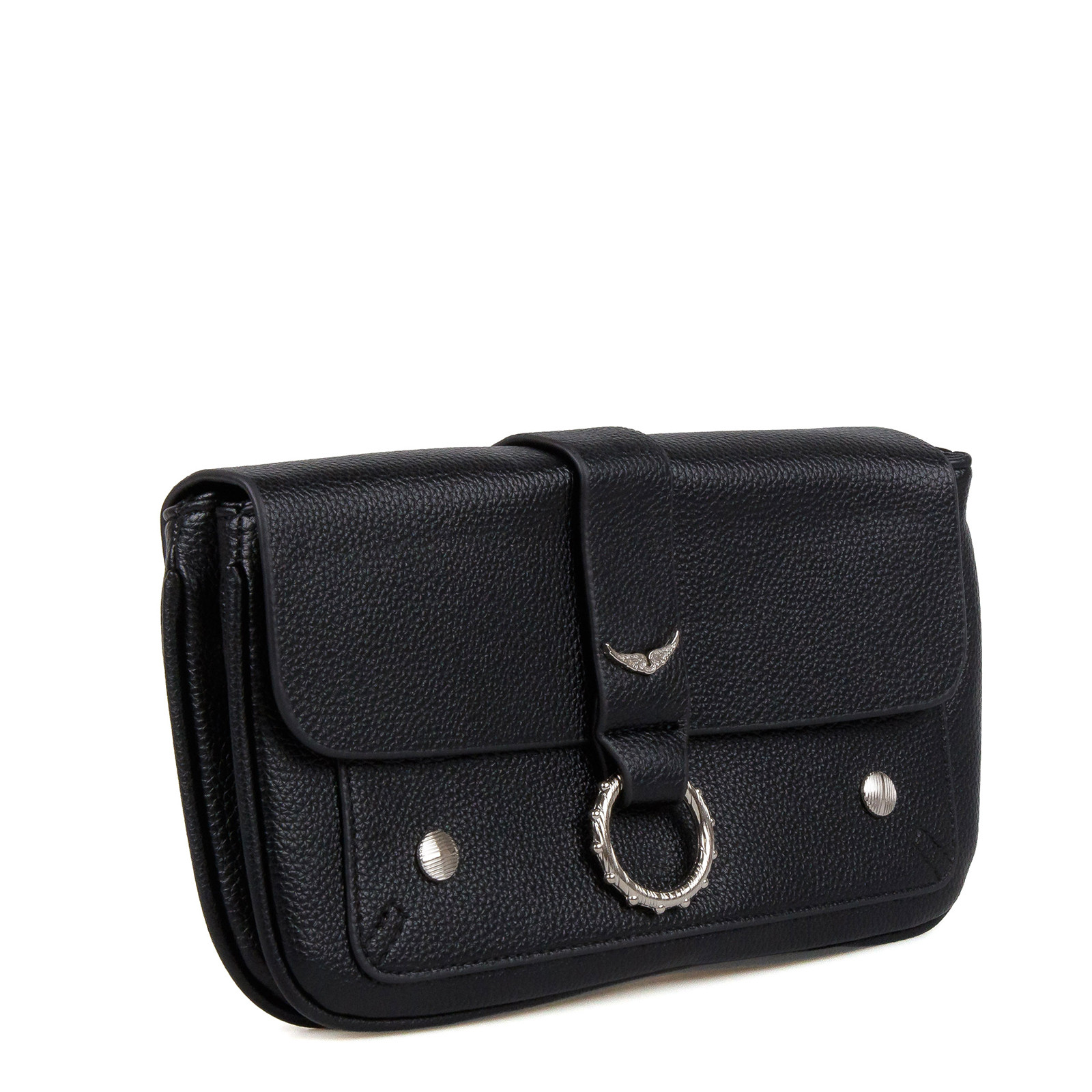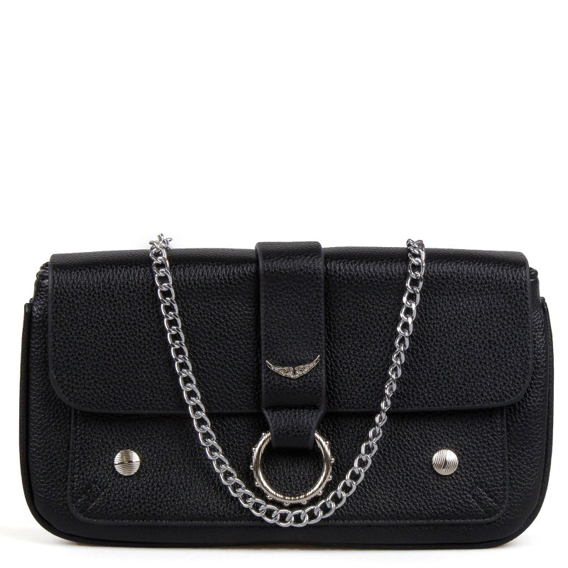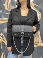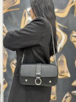 Διαθέτει ασημί λεπτομέρειες, και διακοσμητικό με strass. Έχει αποσπώμενη μακριά αλυσίδα για να κρατηθεί στον ώμο ή χιαστί. Εσωτερικά έχει δύο ξεχωριστές κεντρικές θήκες για κλειδιά ή μικροαντικείμενα. Εξωτερικά έχει μια βοηθητική στο μπροστινό μέρος.