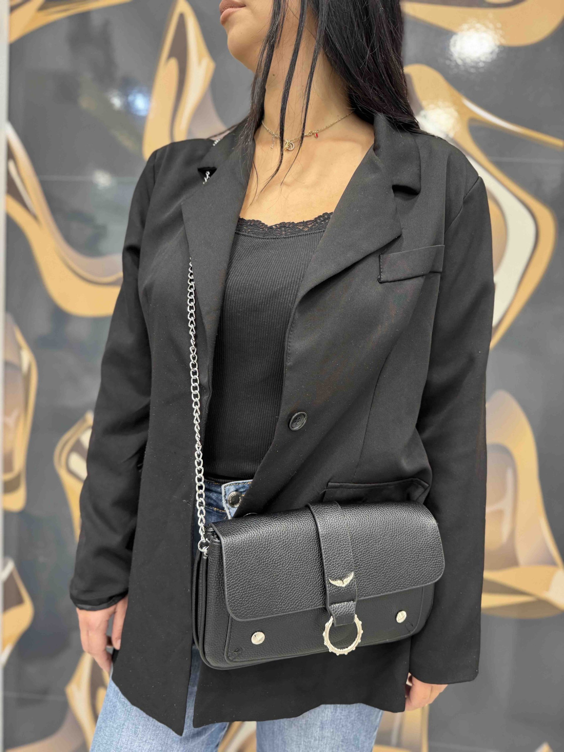 Μαύρο Τσαντάκι Χιαστί με Διακοσμητικό