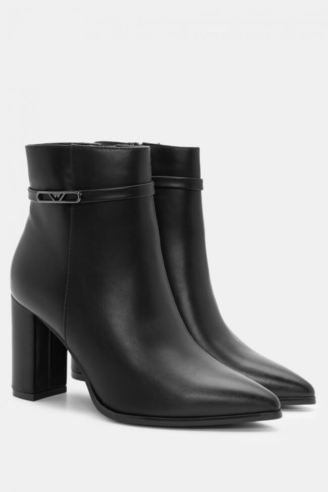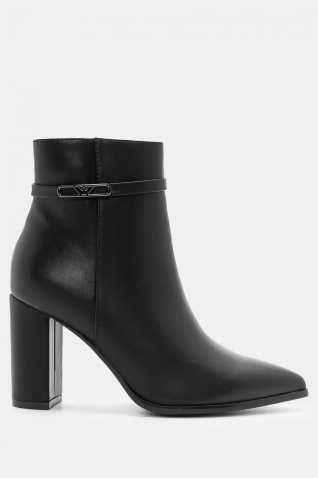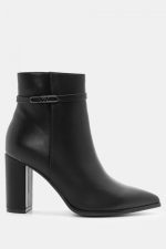 Μποτάκια Αστραγάλου Μυτερά με Διακοσμητικό Λουράκι Μαύρα
