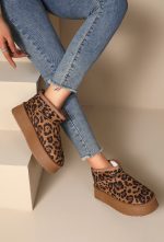 Μποτάκια Δίσολα με Εσωτερική Επένδυση Γούνας Leopard