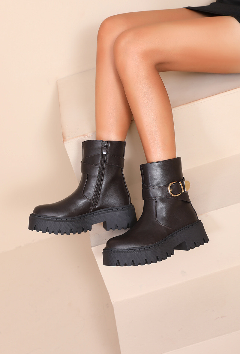 Μποτάκια Με Τρακτερωτή Σόλα Καφέ
