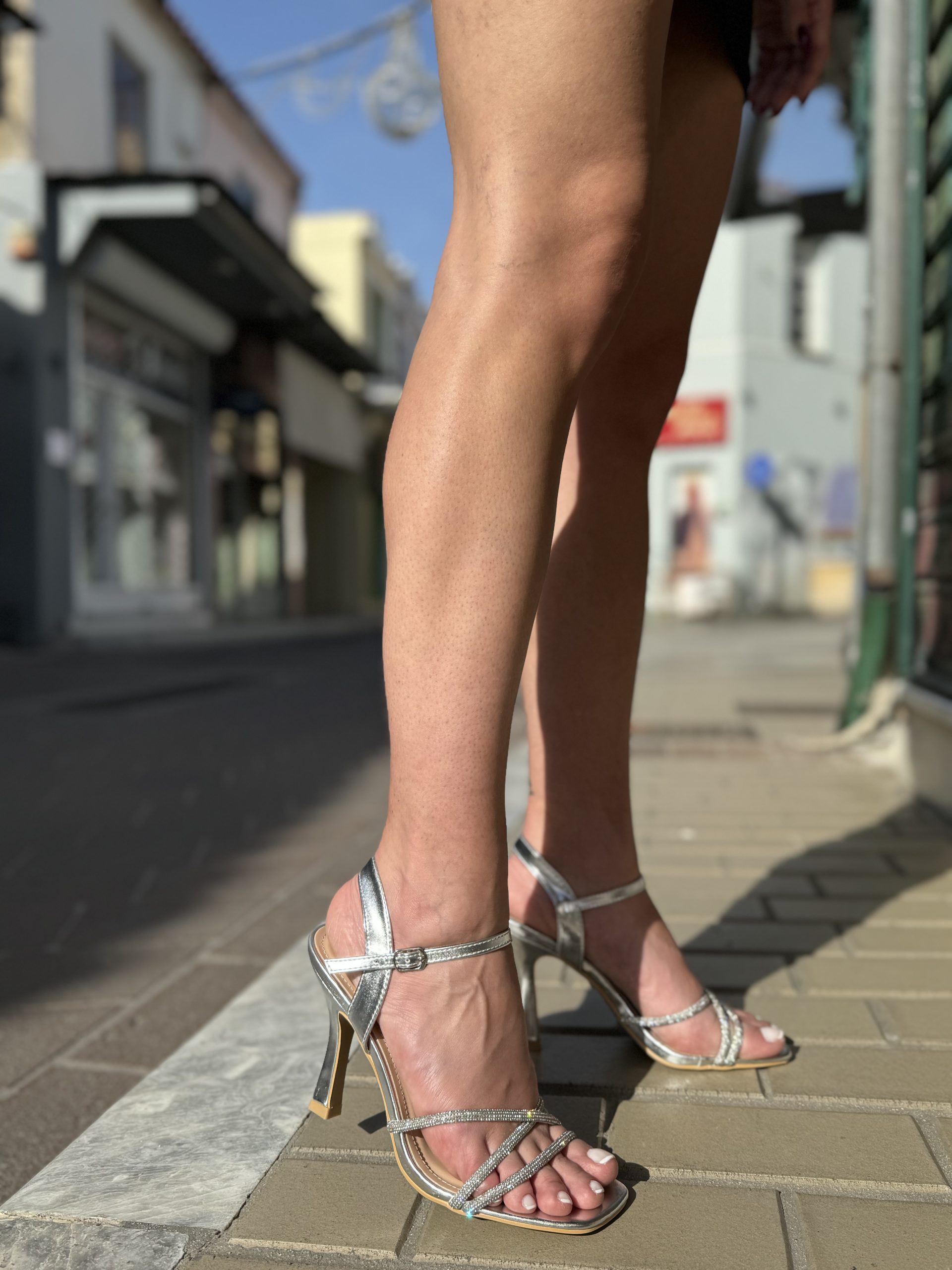 Πέδιλα με Διακοσμητικά Strass Ασημί