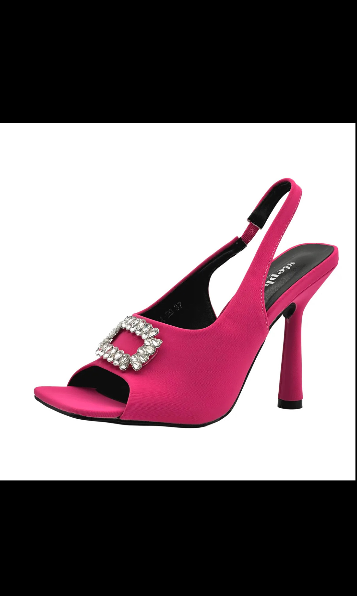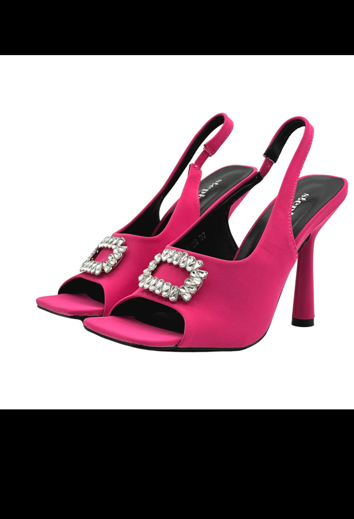 Πέδιλα slingback με ψηλό λεπτό τακούνι και τετράγωνη μύτη, ιδανικά για κομψές και μοντέρνες εμφανίσεις. Ο σχεδιασμός τους προσφέρει σταθερή εφαρμογή, ενώ η ανοιχτή μύτη αναδεικνύει το πέλμα. Κατασκευασμένα από μαλακό υλικό, αγκαλιάζουν το πόδι και παρέχουν άνεση στο περπάτημα.
