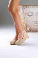 Πλατφόρμες εσπαντρίγιες μπεζ με μπαρέτα
