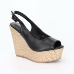 Πλατφόρμες Με Λουράκι Και Ψάθα Μαύρο