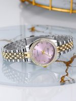 Κομψό γυναικείο ρολόι με ροζ καντράν και χρυσό και ασημένιο μπρασελέ.