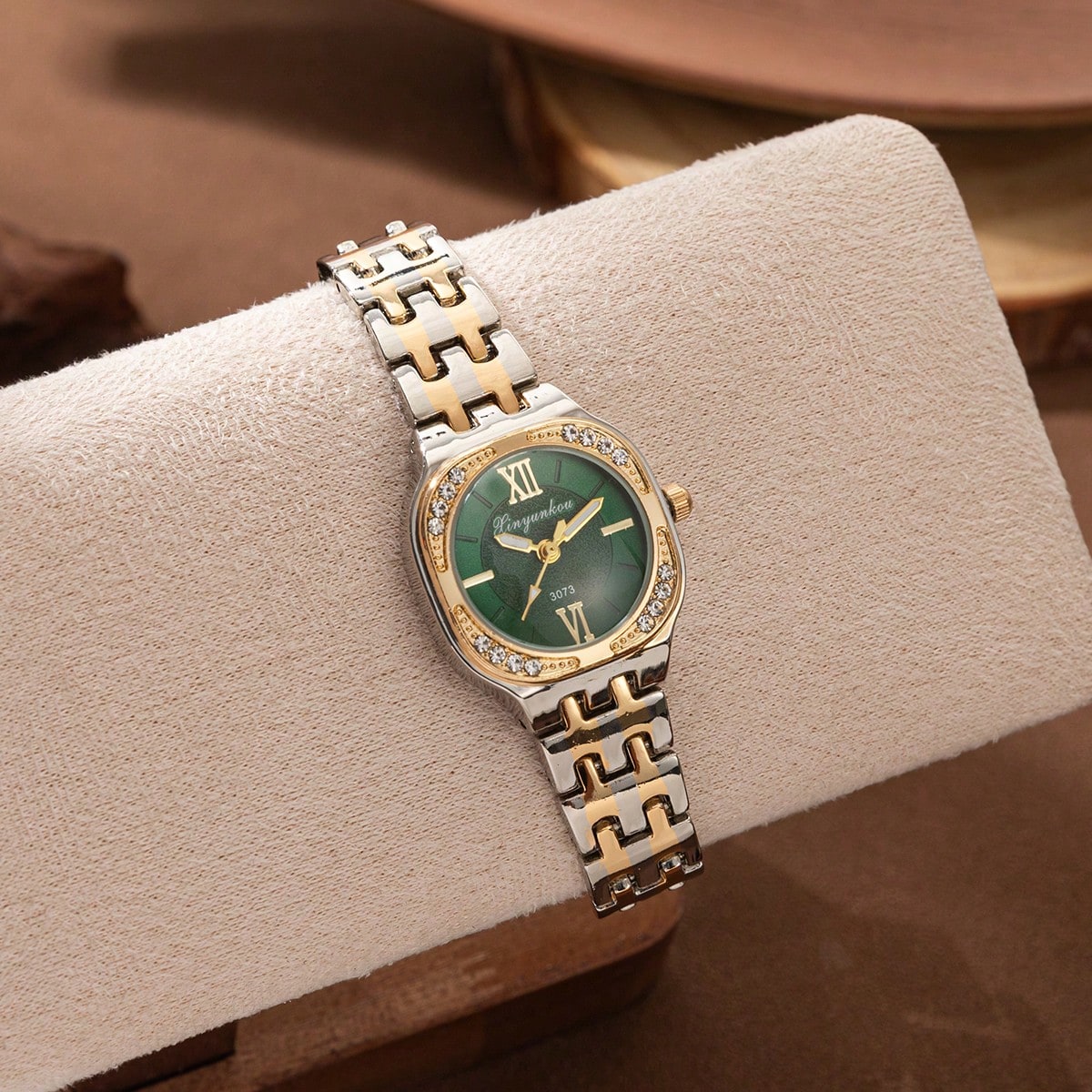 Ρολόι Χρυσό Με Διακοσμητικές Πέτρες Πράσινο