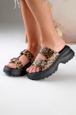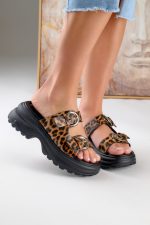 Σανδάλια Flatform με Διπλές Τόκες & Τρουκς Leopard