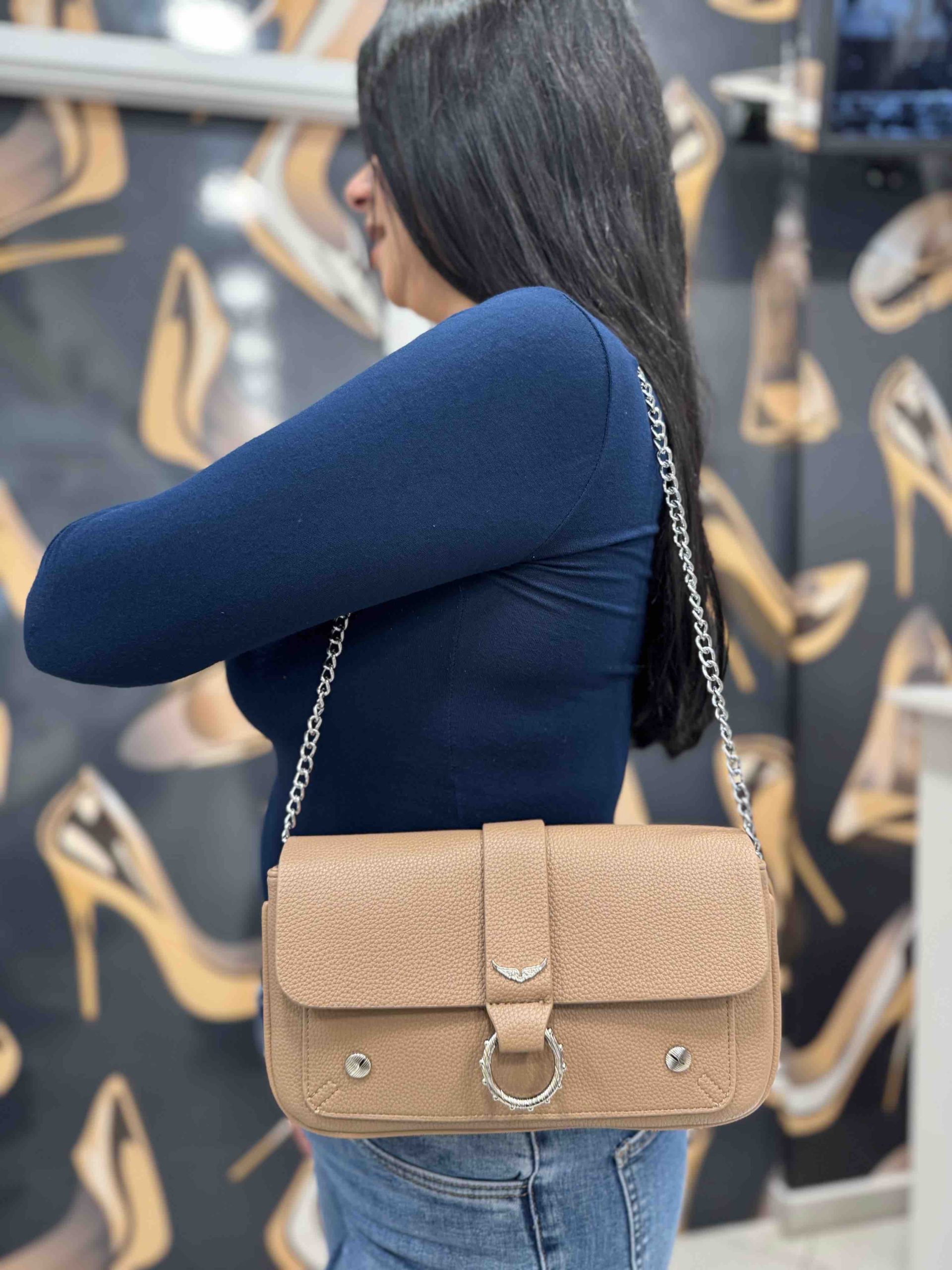Σκούρο Mπεζ Τσαντάκι Χιαστί με Διακοσμητικό