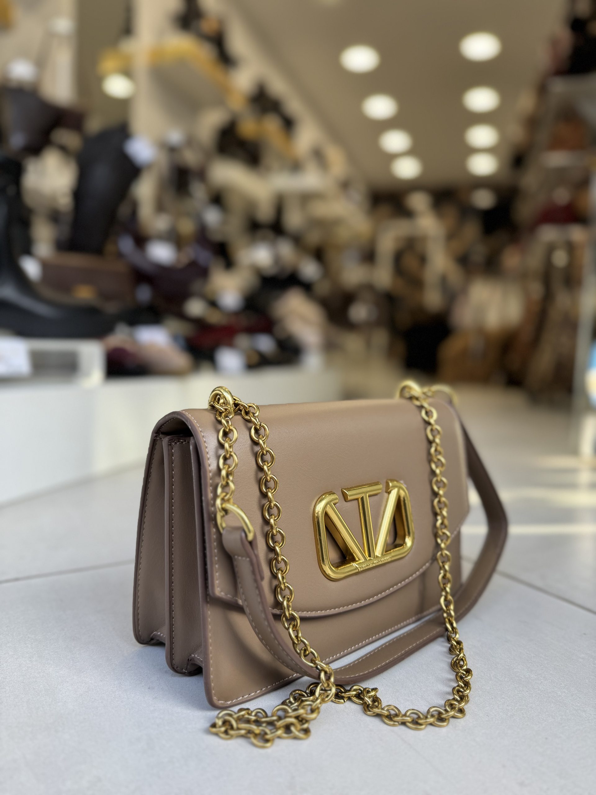 Τσάντα Δερματίνη Με Χρυσό Διακοσμητικό Στοιχείο Nude