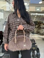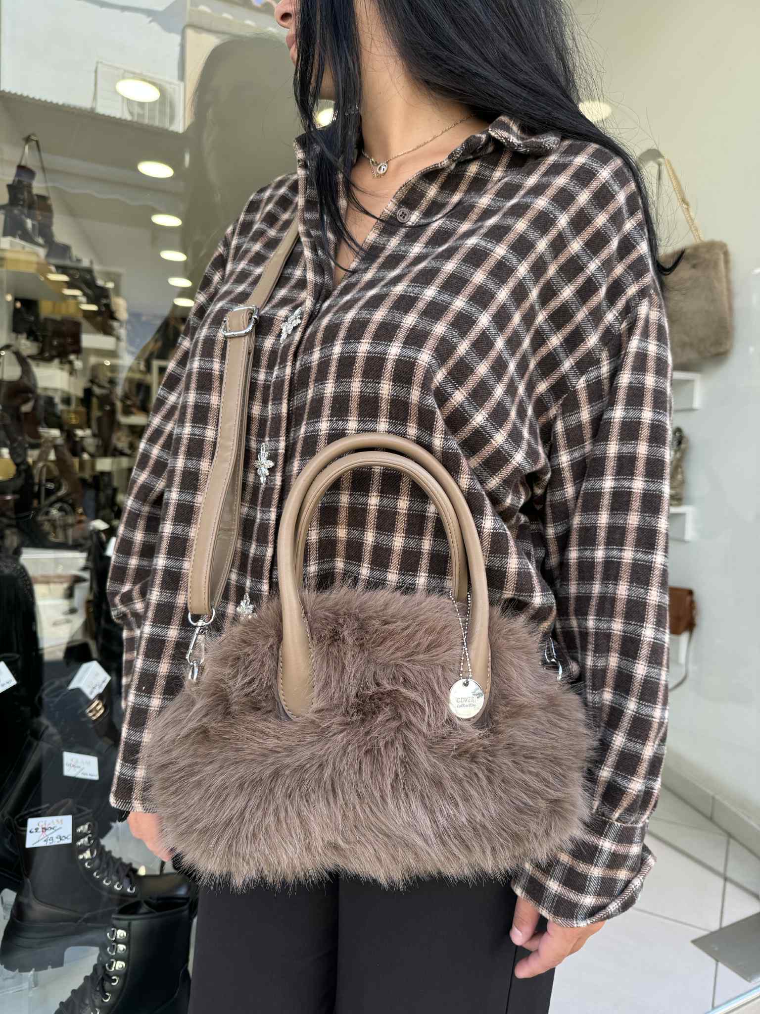 Τσάντα Χειρός γούνινη Με Φερμουάρ Και Εσωτερικές Τσέπες