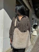 Γυναικεία τσάντα ώμου από οικολογικη γούνα κλείνει με φερμουάρ.