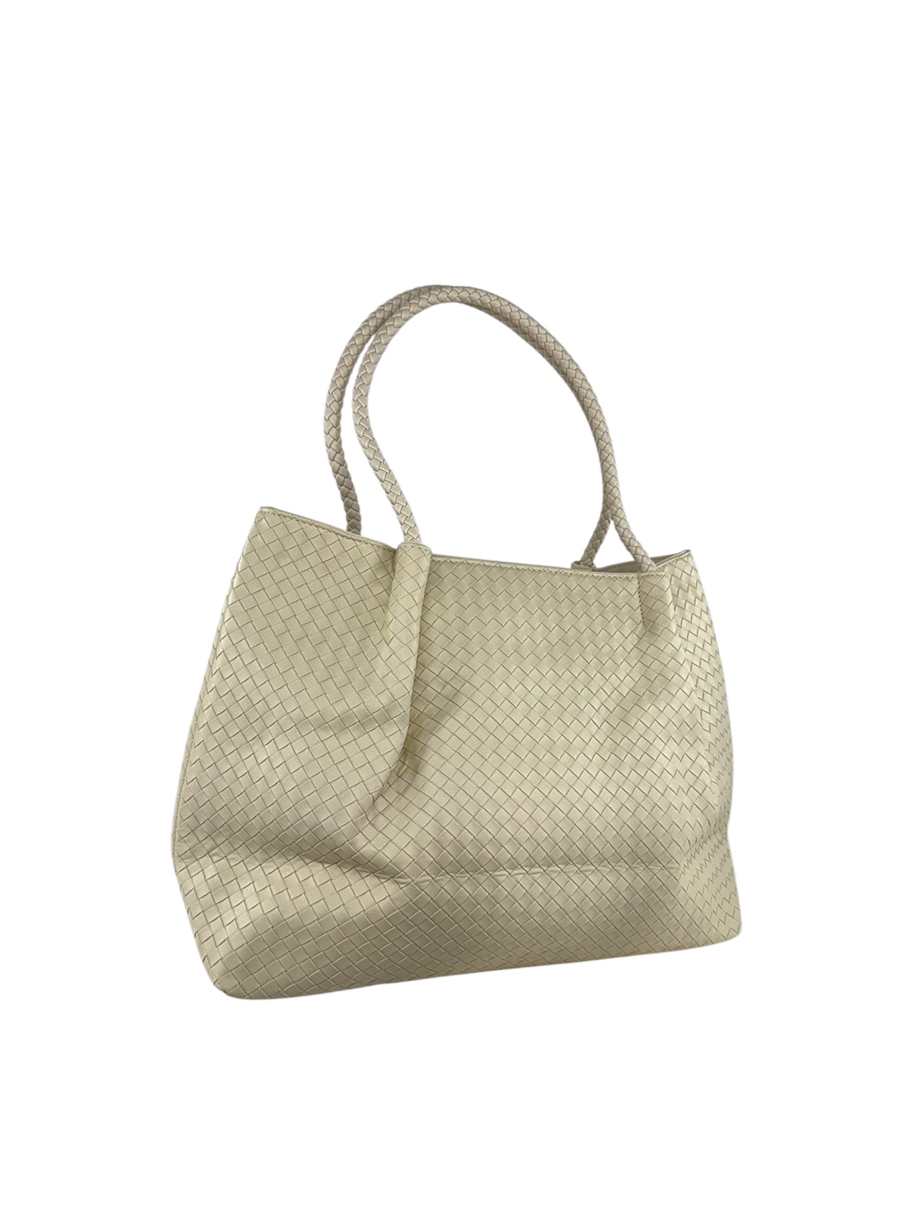 Τσάντα Ώμου με Πλεκτό Σχέδιο Μπεζ