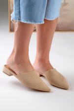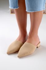 Χαμηλά Mules με Πλεκτή Υφή και Μυτερή Μύτη Μπεζ