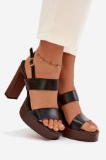 Ψηλά Πέδιλα με Φιάπα & Χοντρό Τακούνι Μαύρο