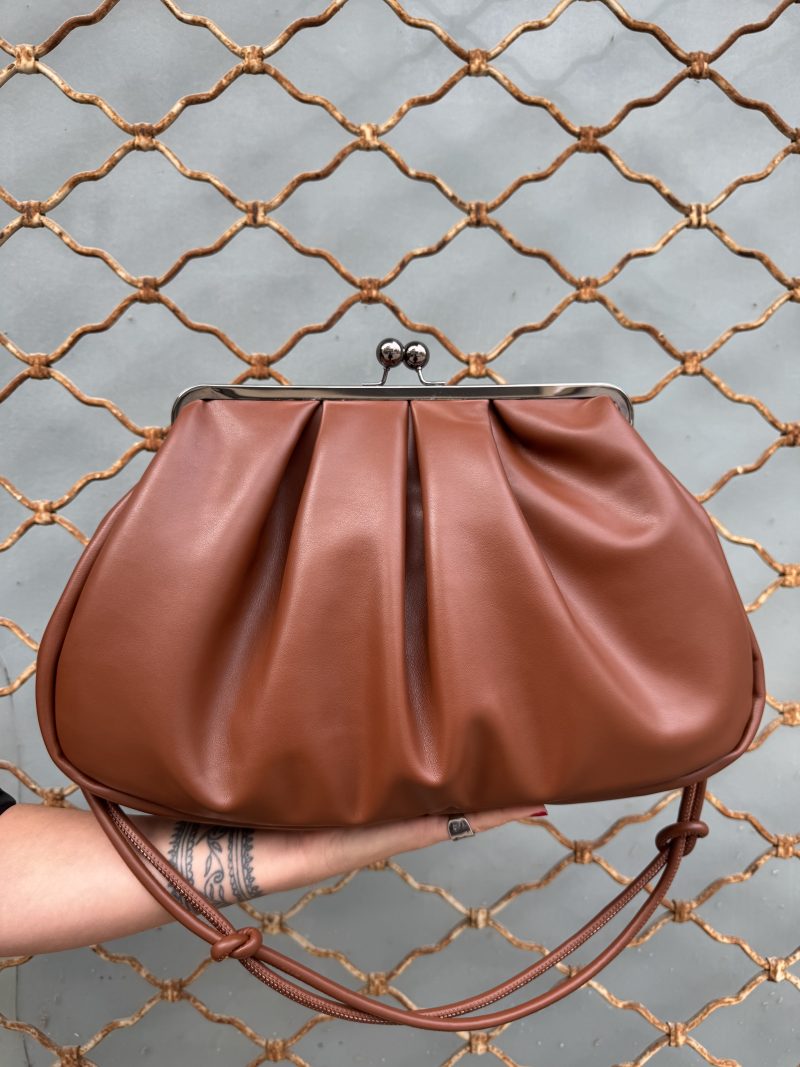 Clutch XL Με Μεταλλικό Κούμπωμα Καφέ