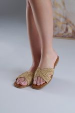 Flat Σανδάλια με Πλεκτή Φάσα Μπεζ