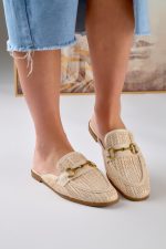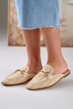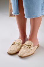 Mules με Διακοσμητική Αγκράφα Μπεζ