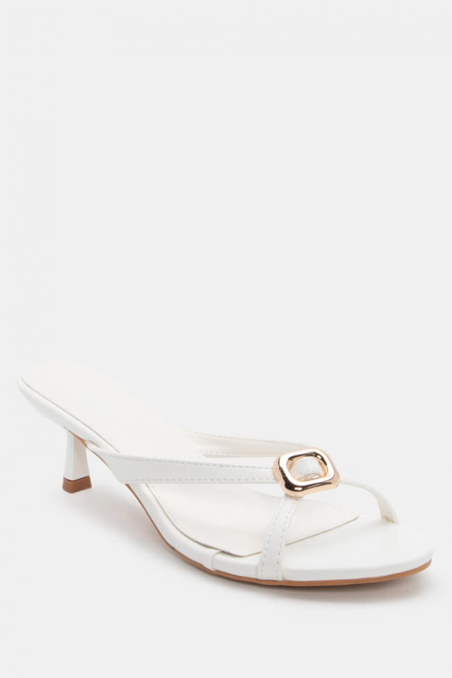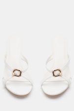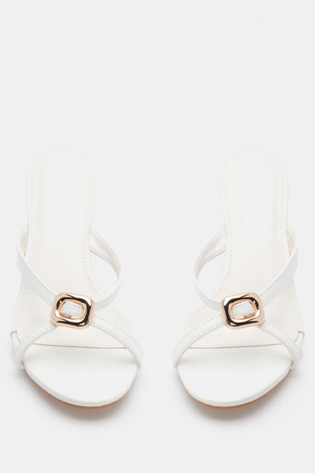 Mules με Χιαστί Λουράκια & Μεταλλική Λεπτομέρεια Λευκό