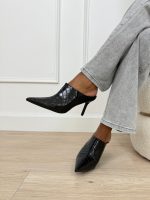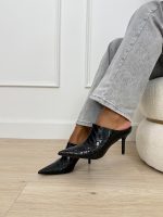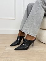 Mules με Croco Σχέδιο και Ψηλό Τακούνι Μαύρο
