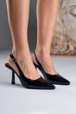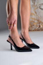 Slingback Μυτερές Με Λουράκι Μαύρο